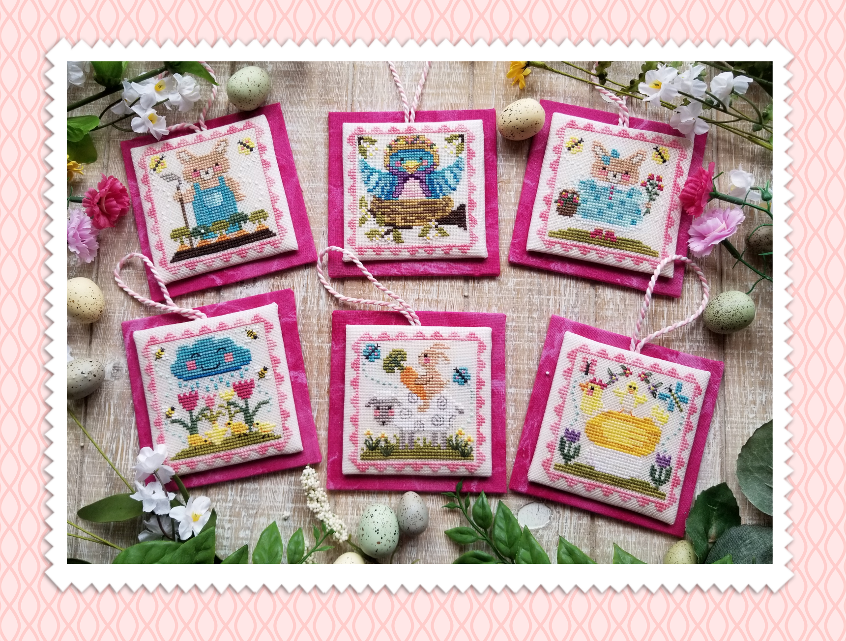 Hope you all had a happy and healthy winter season and are ready for some Spring Stitching!! I’ve come up this cute little set of 6 designs to welcome this wonderful season of rebirth. SPRING LITTLES is the second of a new series of small, ornament-sized designs that I will be doing for each of the four seasons. They can be finished as ornaments or mini-pillows, or even stitched all together on a single piece of fabric.